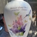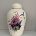 Hummingbird with Pink, Lavender and Purple Lilacs on Adult Cremation Urn large Jar with Lid. Large Urn for Ashes, Funeral Urn Handmade. This Vessel is designed as a cremation urn in honor of a life lived. Made Ceramic with a Fired Glaze and fired on Design.